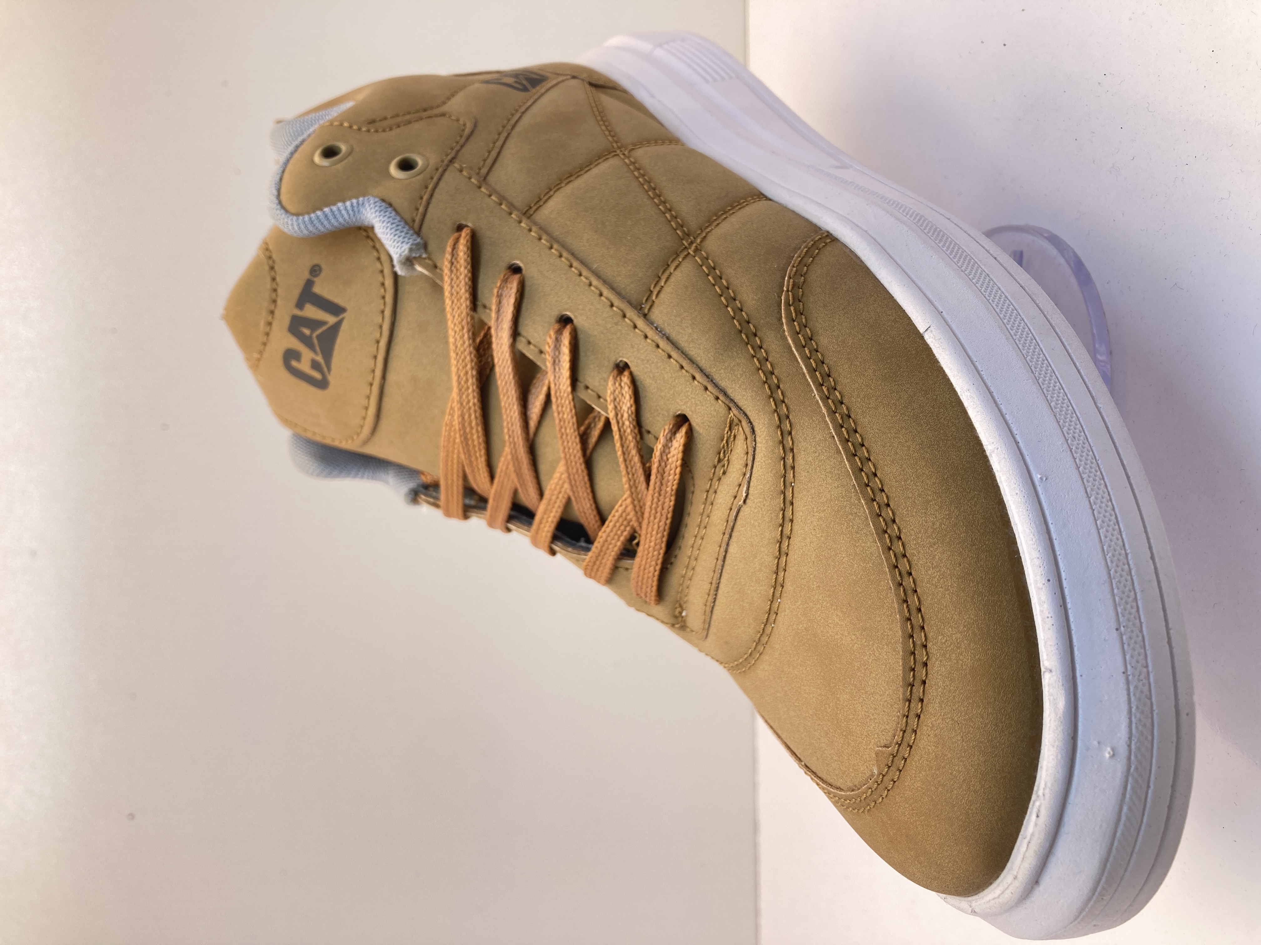 مشخصات ظاهری کتونی CAT برند: CAT (Caterpillar) مدل: ساقدار (Mid-Top) رنگ: خاکستری تیره / طوسی جنس رویه: چرم مصنوعی یا نوبوک صنعتی (مقاوم و نیمهمات) نوع بسته شدن: بنددار کفی: ضخیم، سفید رنگ، سبک و طبینما زیره: لاستیکی با طراحی جذب ضربه یقه کفش: پددار (برای راحتی مچ پا) کاربری: روزمره پیادهروی استایل کژوال نیمهاسپرت استایل: اسپرت–شهری (Urban / Casual) ✨ ویژگیهای قابل تشخیص طراحی مقاوم و صنعتی (سبک برند CAT) مناسب استفاده طولانیمدت محافظت خوب از مچ پا ظاهر شیک و ساده مناسب پاییز، زمستان و بهار